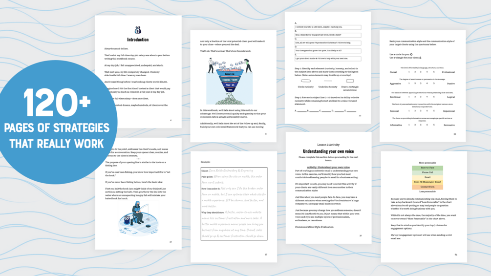 Get bigger & better freelance clients with 155+ pages of expert advice, research, activities, tactics, and more.