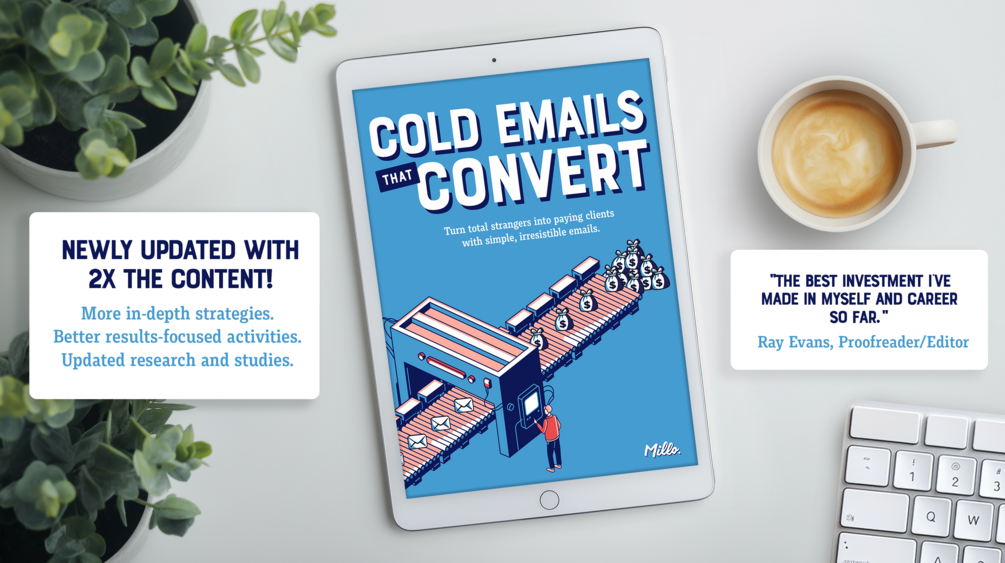 As with all our products, this course comes with a 100% money-back guarantee. If you complete the course and are not pleased with your ability to craft convincing cold emails that convert, simply email us at products@millo.co and we’ll gladly give you a refund.